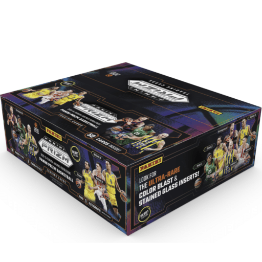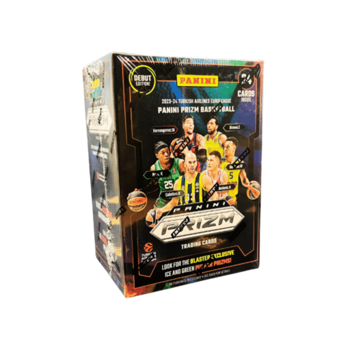 For example, the “Prizm EuroLeague Basketball Blaster Box” has 6 packs of 4 cards (a total of 24 cards), with an average of 3 exclusive Prizms, 3 “other Prizms,” and 3 inserts, along with the exclusive “Ice and Green Pulsar Prizms.”
